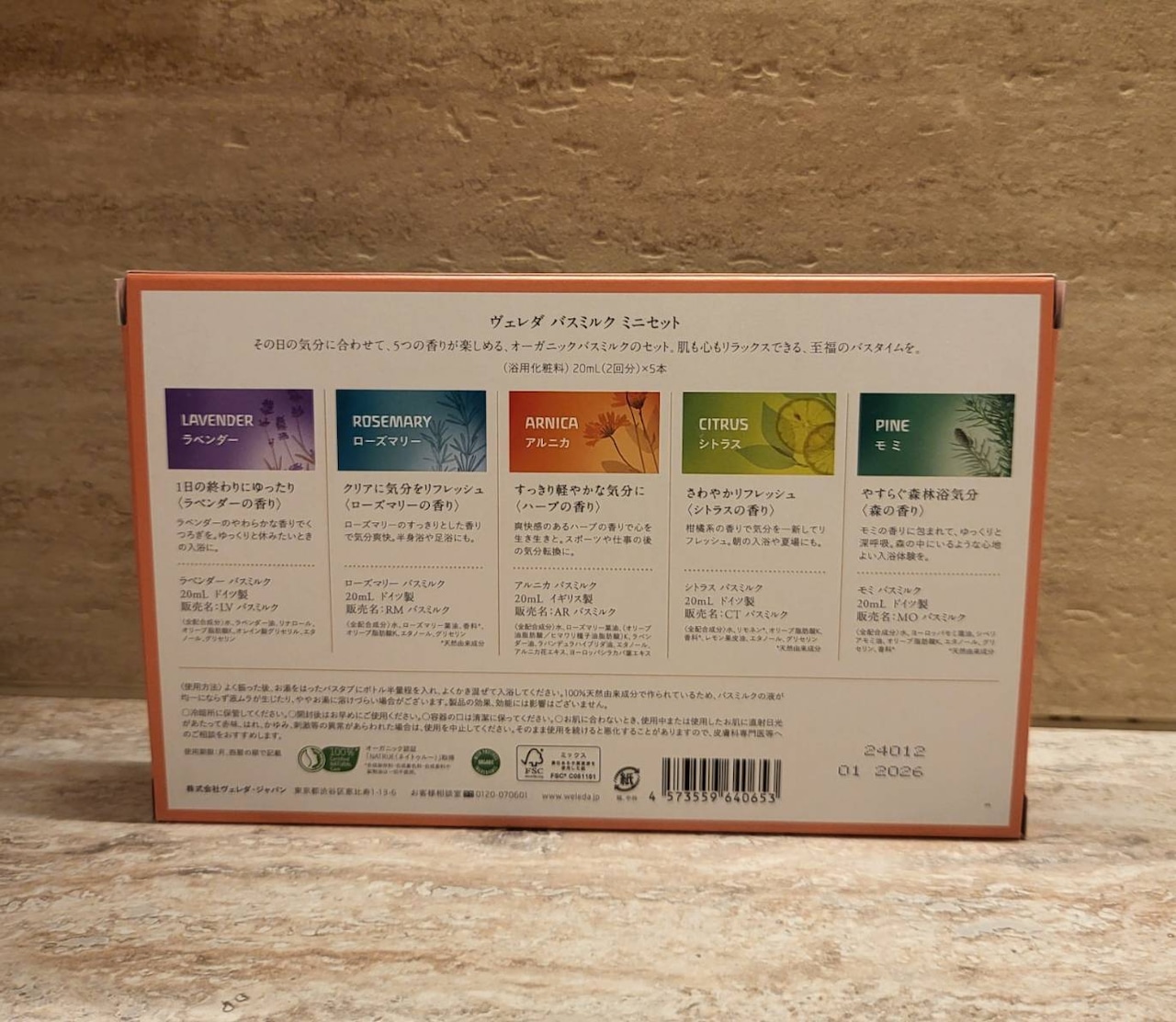 人気のバスミルクの中から、ラベンダー、ローズマリー、アルニカ、シトラス、モミの5つをミニサイズに。気分に合わせて香りを選んでいただけます。トライアルやギフトはもちろん、出張や旅行にも。